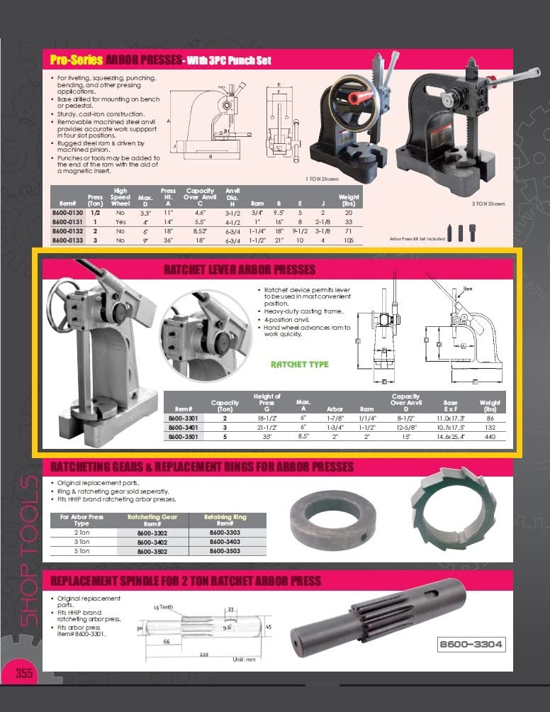 for flexibility. Press height is 21-1/2". Ram diameter is 1-1/2”. Capacity