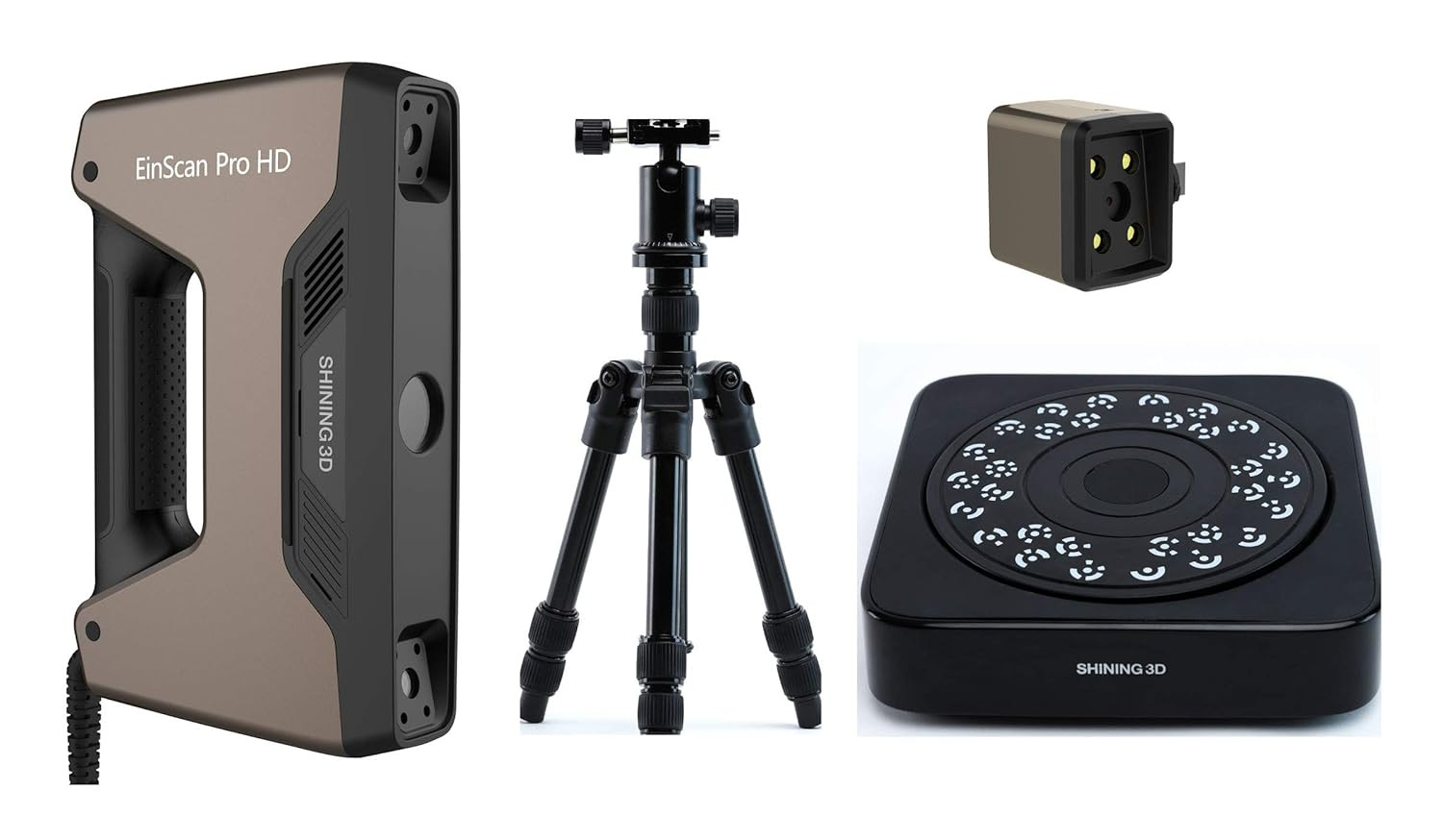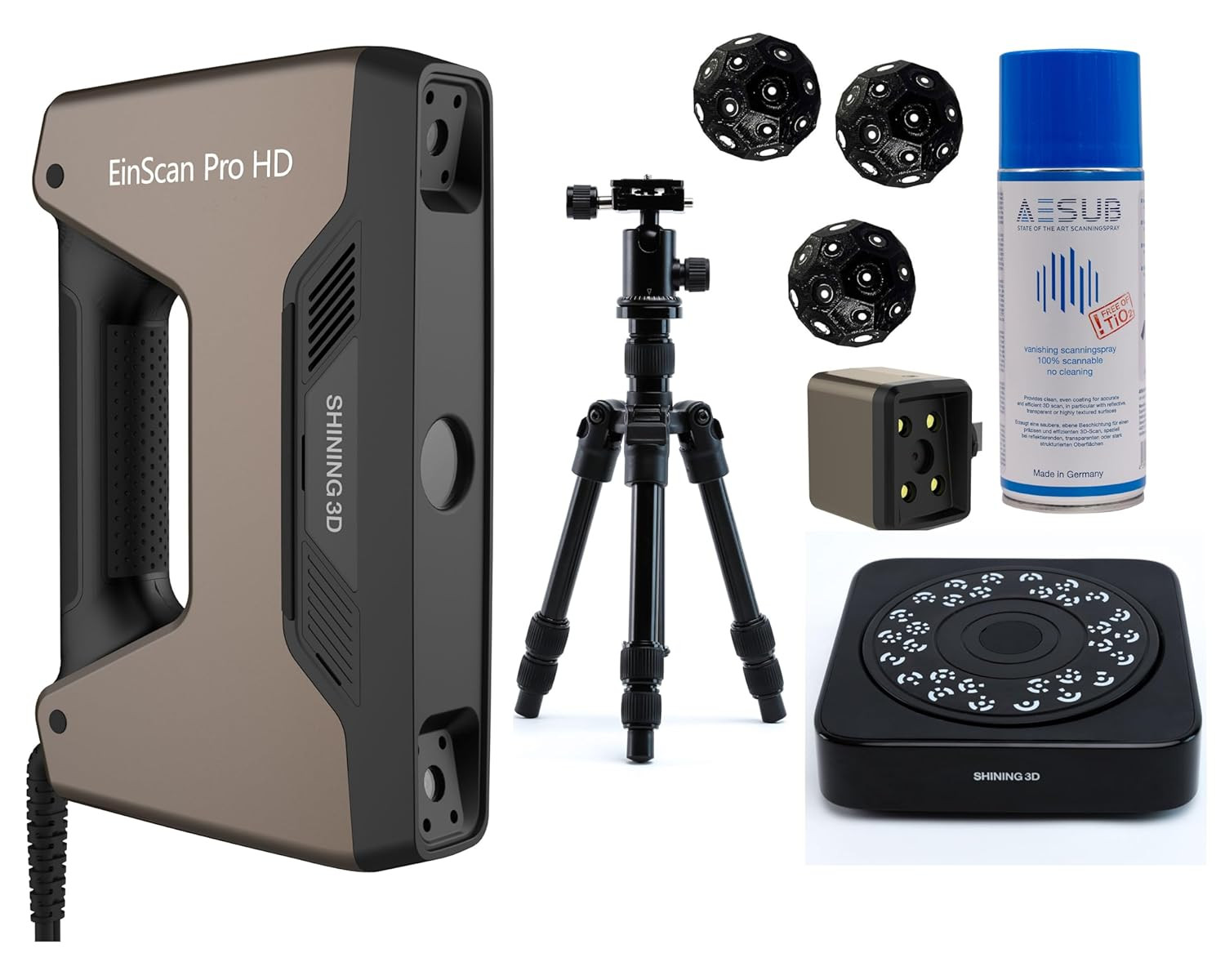 EinScan Pro HD handheld scanner, a turntable, tripod, color camera, 3D