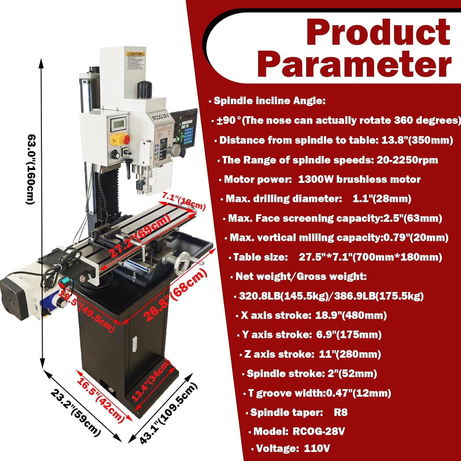 【X Axis Power Feed】: Support stepless speed regulation and positive and negative