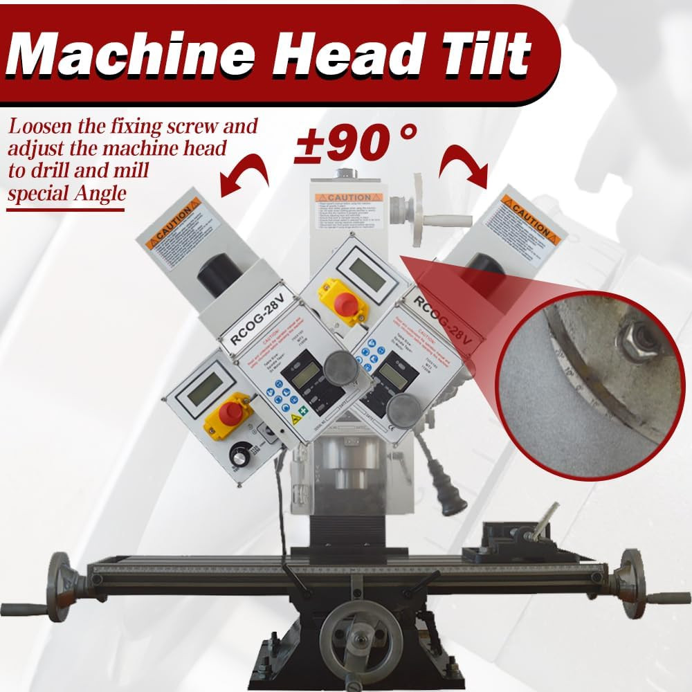 【90° Tilt Of The Spindle】: By adjusting the fixing screws of the head, the head can be