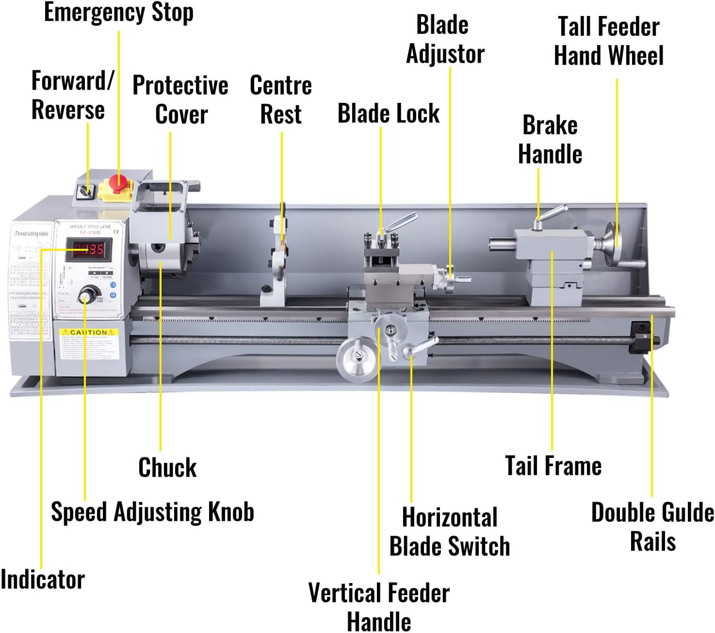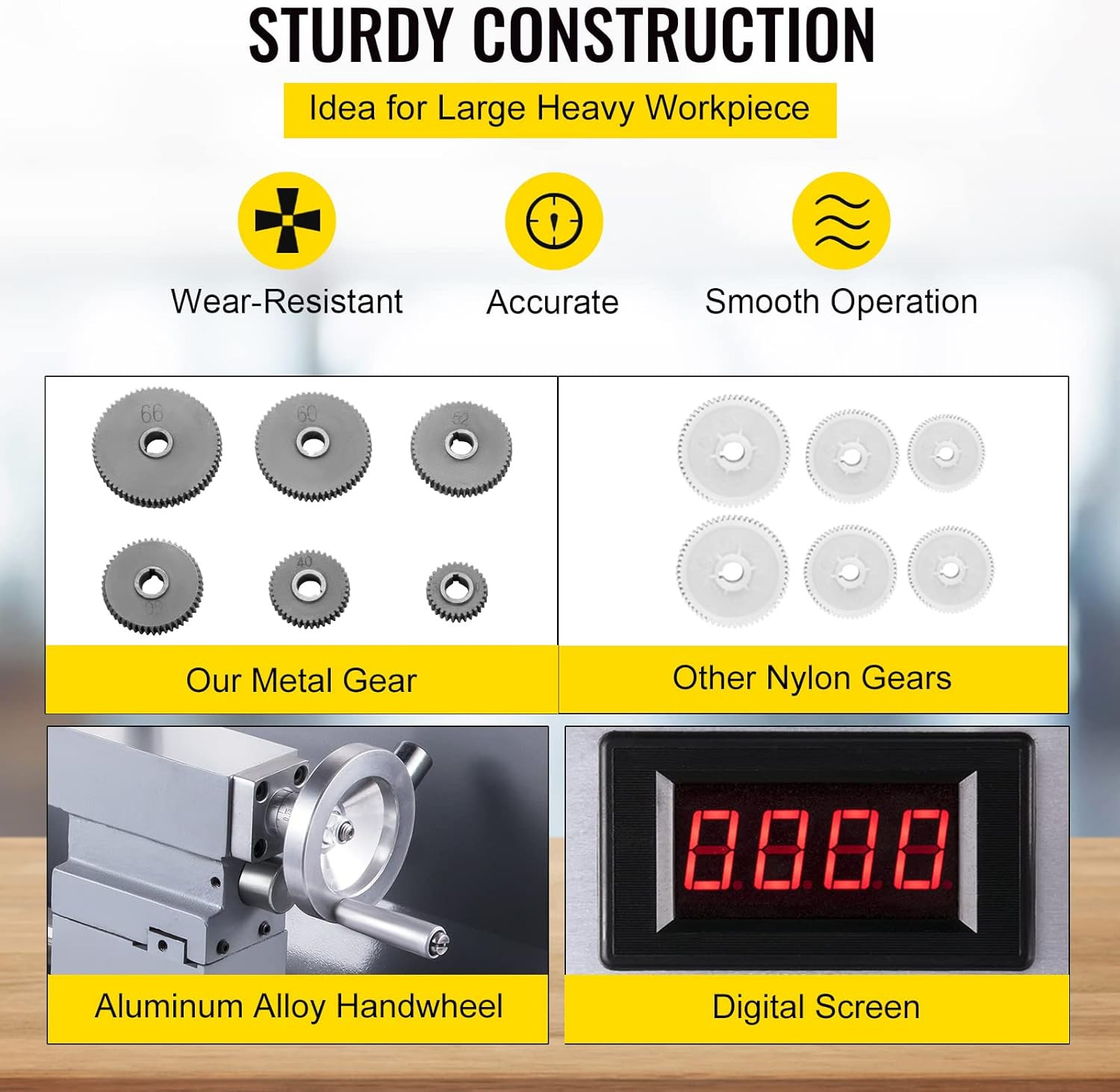 【STURDY & DURABLE CONSTRUCTION】The mini lathe is made of high-quality HT200 cast iron,