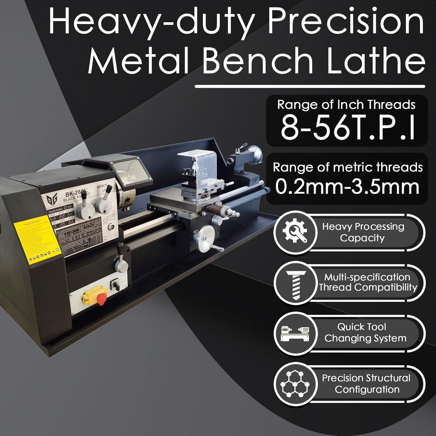 【High precision】:This Geared Head Bench Lathe equipped with MT4 spindle and MT2