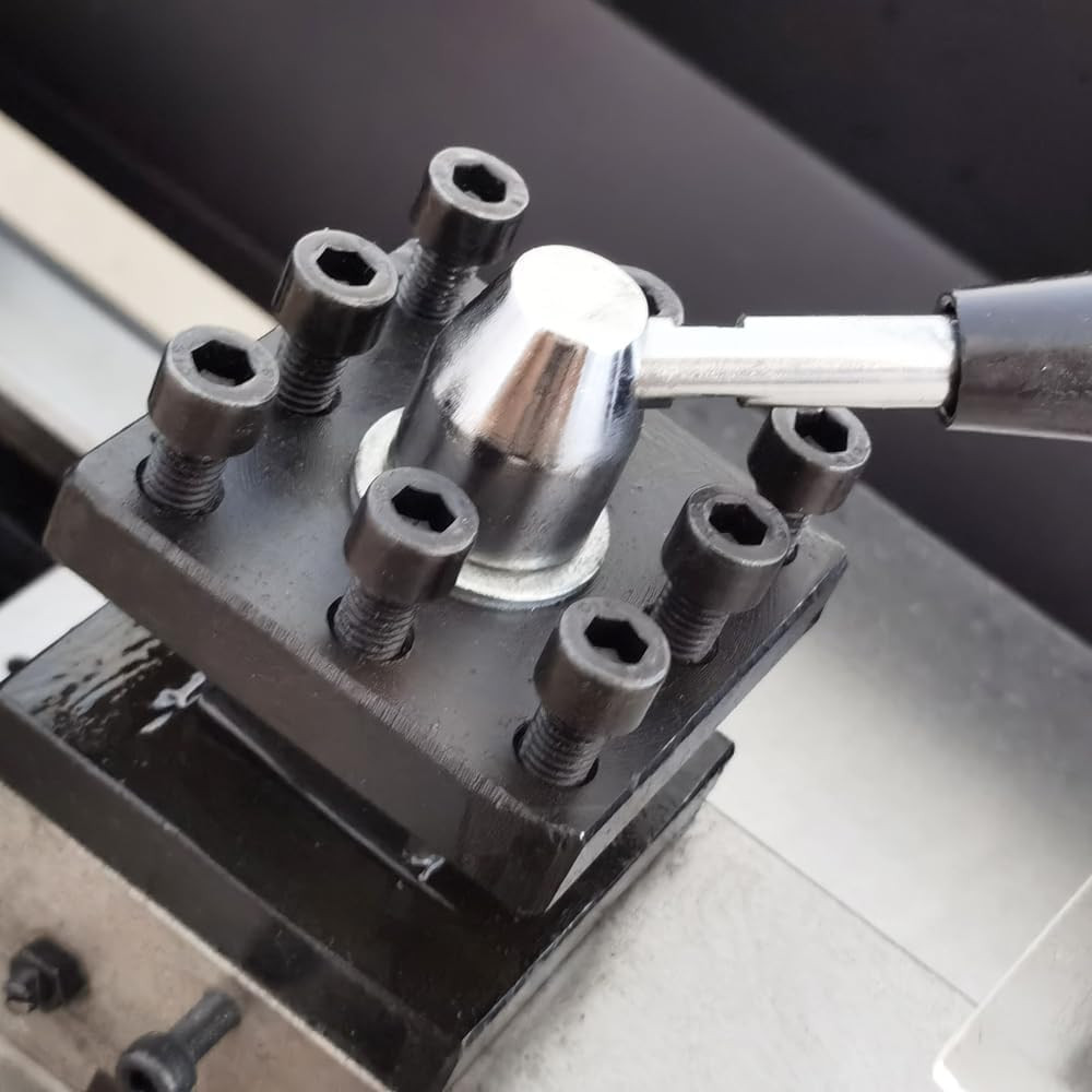 4-way tool post on the lathe allows you to easily change your cutting tools.