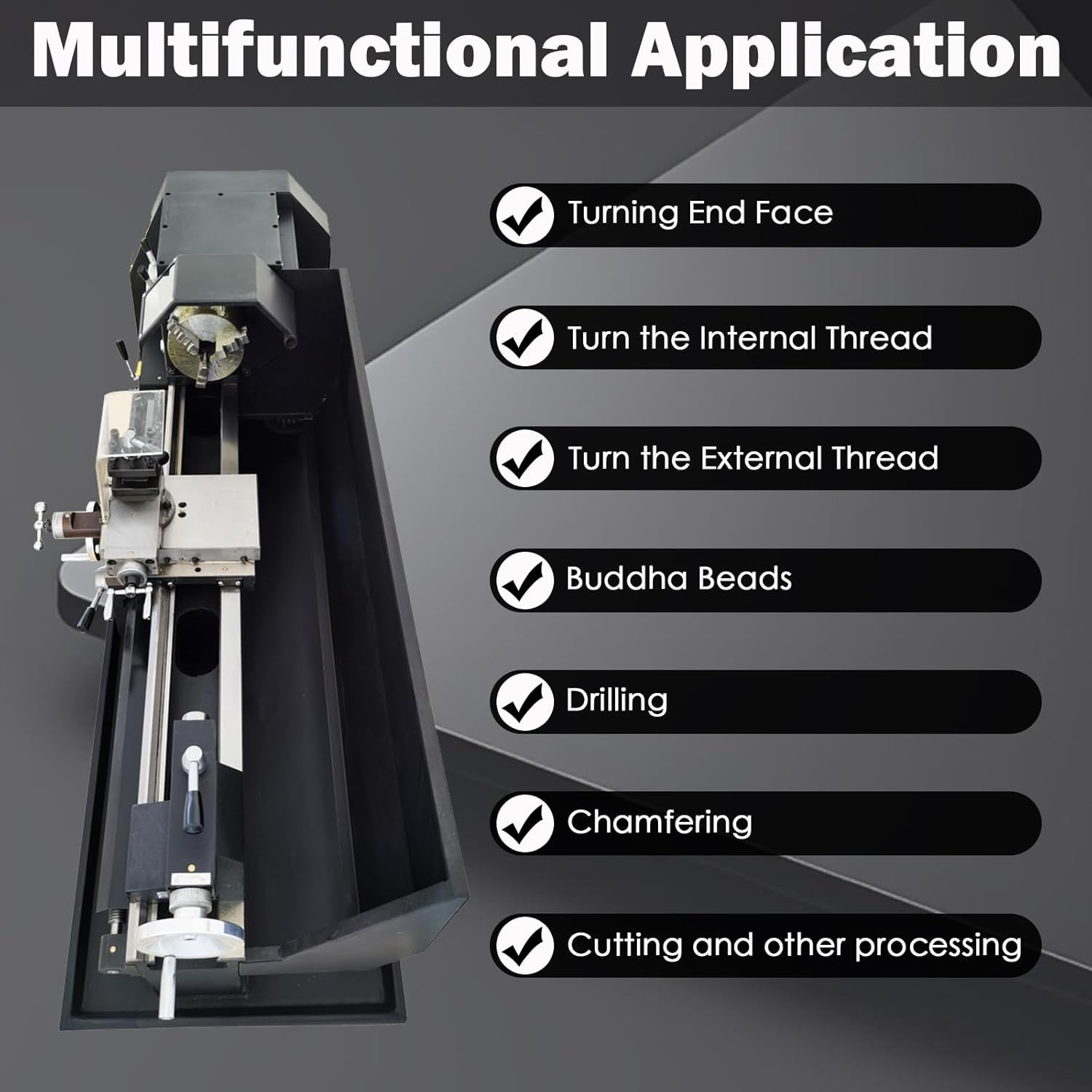 【Safety First】:The lathe is equipped with emergency stop switch and overload